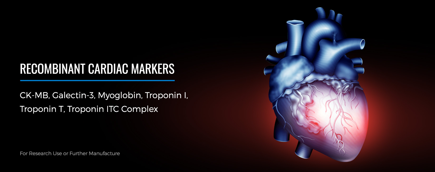 Creatine Kinase MB - ≥95% | Creatine Kinase MB - partially pure | Galectin-3 | Myoglobin | NT-proBNP | Troponin I | Troponin T, Lyophilized | Troponin T, Liquid | Troponin ITC Complex, ≥95% | Troponin ITC Complex, ≥50%